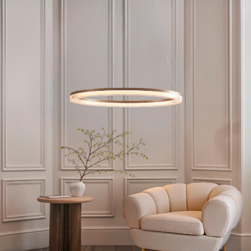Satin gold LED halo pendant with flutted detailing 3200lm