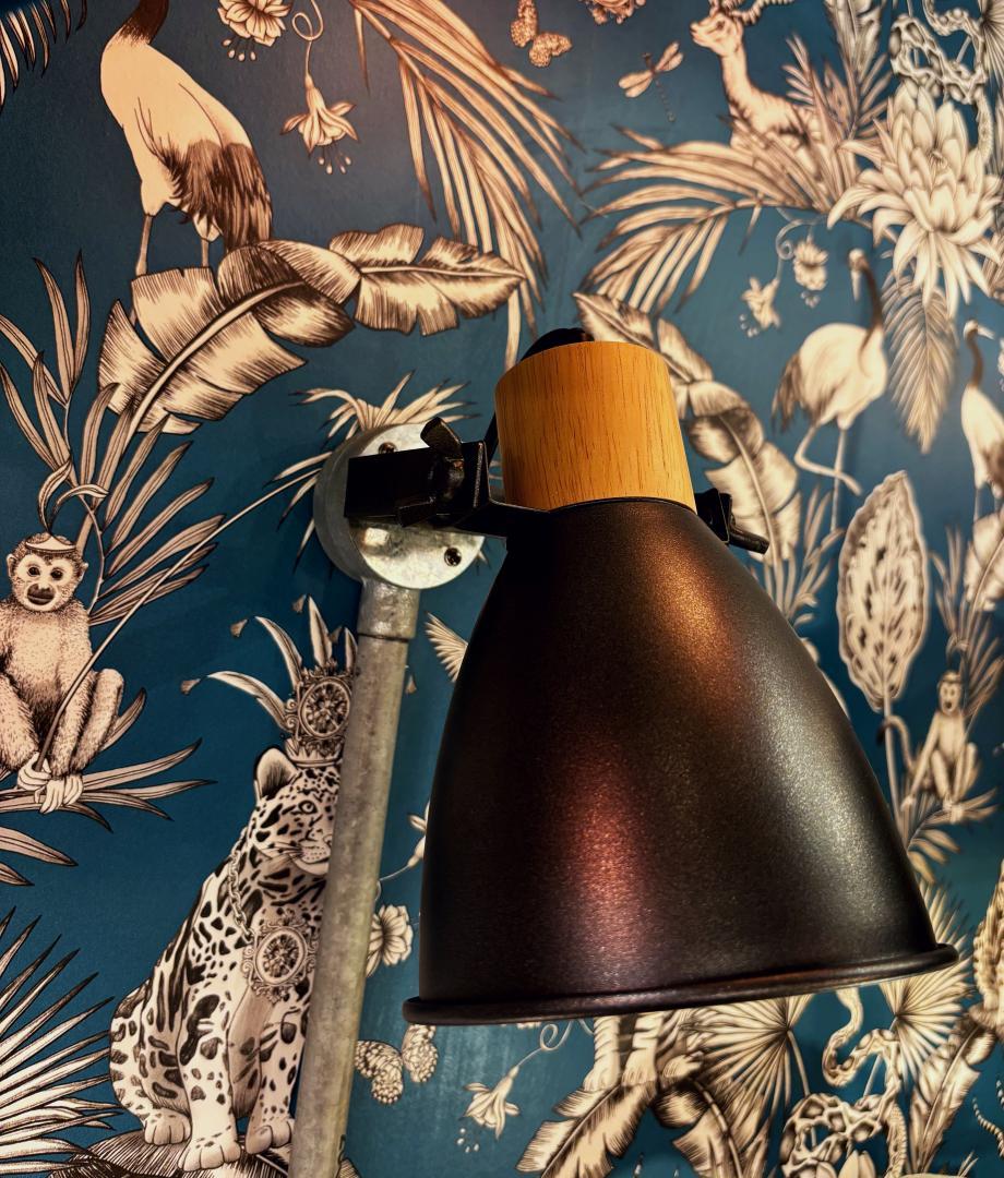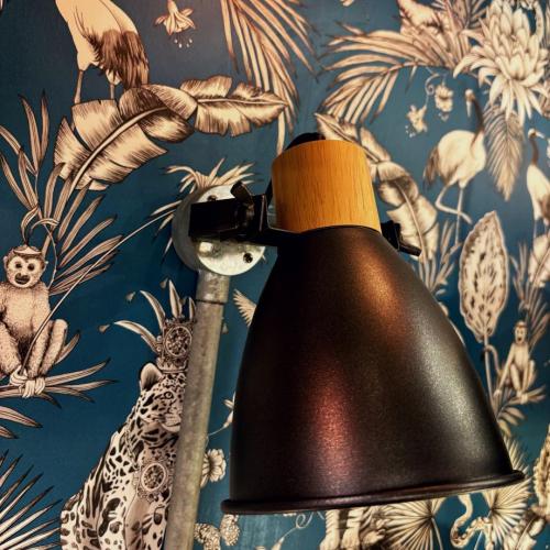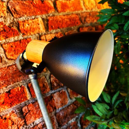 Retro black E27 shaded conduit light with wooden detailing. A gorgeous black metal domed shade with a light pine wood backing. Bringing metal and wood together really gives this lamp a Scandinavian feel to it. It’s simple matte black shades takes an E27 lamp.