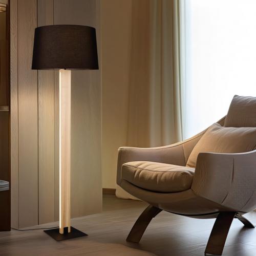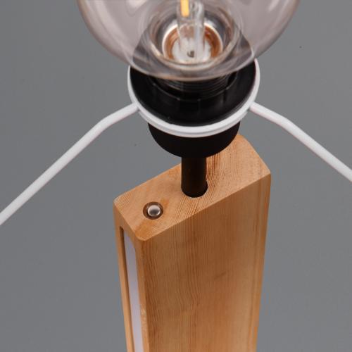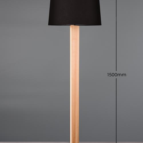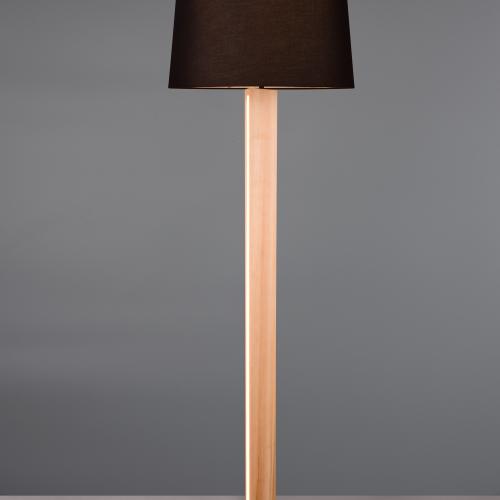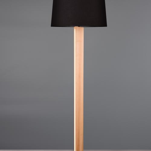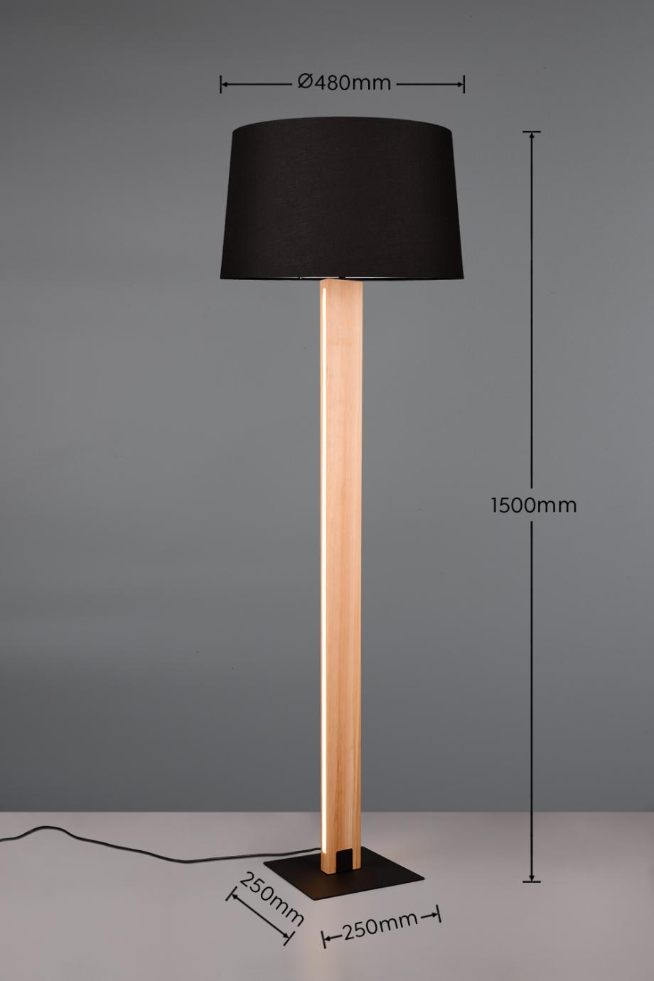 Natural materials are particularly popular at the moment and create a cosy atmosphere that invites you to linger. The floor lamp gives your home a unique charm thanks to its minimalist design and the use of wood and fabric. The lampshade also provides a pleasantly soft light. The luminaire is equipped with a discreet switch on the body that switches the two light sources on and off separately and continuously adjusts the brightness using an integrated dimmer. The light source on the body of the light creates an impressive wow effect. The combination of wood and black gives the light a modern and inviting look, which makes it easy to integrate into various interior design concepts. The use of LED light sources is recommended for energy-saving lighting. These are an ideal alternative to conventional halogen light sources and offer high light quality and energy savings of up to 80%. With LED light sources, you also benefit from a long service life and low heat generation while protecting the environment.
