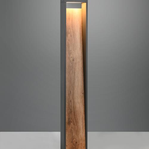 The outdoor lights in the series are enchanting all along the line. The perfect combination of indirect light, functionality and stylish appearance makes these lights an indispensable element in your outdoor area. Placed in the entrance area or next to the landing, the path luminaire provides an appealing light for every newcomer and contributes to safety. Thanks to the IP44 protection rating, the light is extremely versatile. The colour mix of anthracite and wood reproduction is currently on trend and gives your outdoor area a visual upgrade. The luminaire also features modern LED technology, which is characterised by high light quality and energy efficiency. Compared to conventional halogen light sources, up to 80% of energy costs can be saved. With LED light sources, you also benefit from a long service life and low heat generation while protecting the environment.
