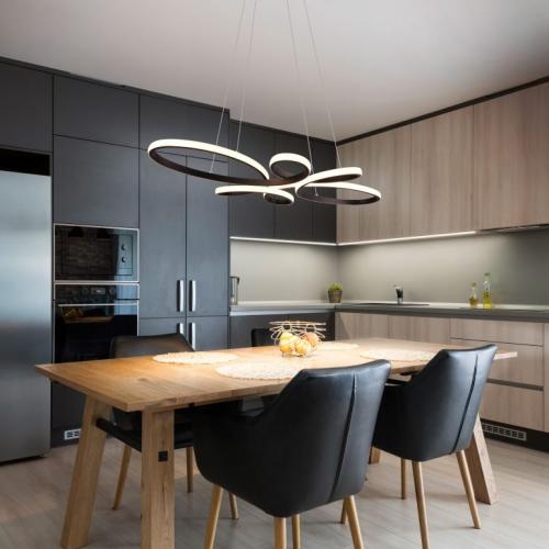 Illuminating the dining room in an atmospheric yet sufficiently bright way requires a special and modern lighting concept. The curved pendant light, which forms the centrepiece of any dining area, creates a perfect balance between functionality and design.