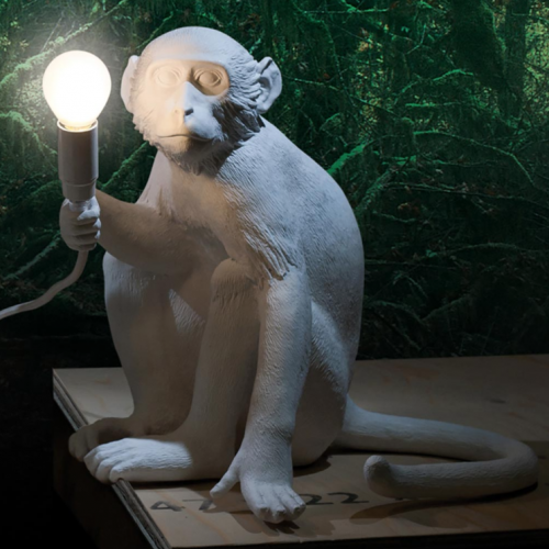 Seletti white sitting monkey light. An amazing collection of Monkey inspired light fittings. We are one of only a few UK suppliers of these novelty lights I cam across the brand while in Italy and was fortunate enough to start working with them. The Seletti range includes parrot lights, sitting monkeys and standing monkeys.