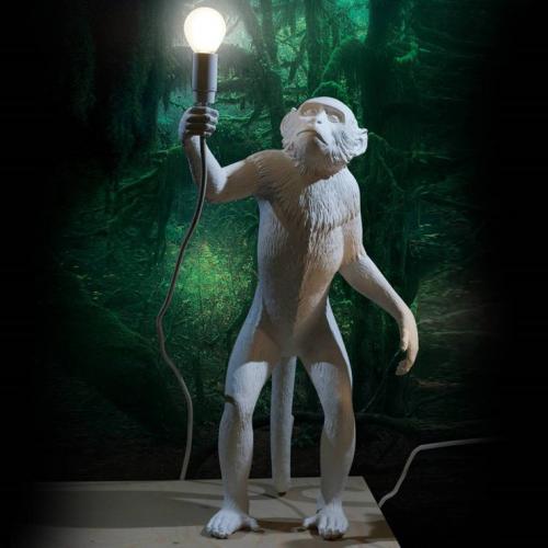 Seletti white standing monkey. An amazing collection of Monkey inspired light fittings. We are one of only a few UK suppliers of these lights. I came across this brand while in Italy and was lucky enough to start working with them on my return. The range includes parrott lamps, sitting monkeys and ceiling hanging monkeys. The white ones could also be painted so you can customize your monkey. They are an ideal light for a child's bedroom, bar room or man cave. We have these cheeky little monkeys on display now in our Bristol Lighting showroom. Each Monkey comes with white fabric cable, an LED lamp and a UK plug. They are beautiflly boxed and packaged and would make a great gift.