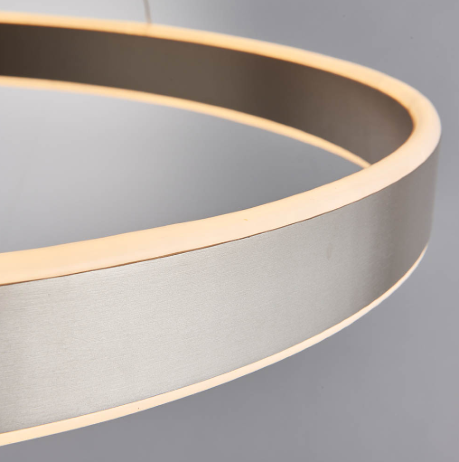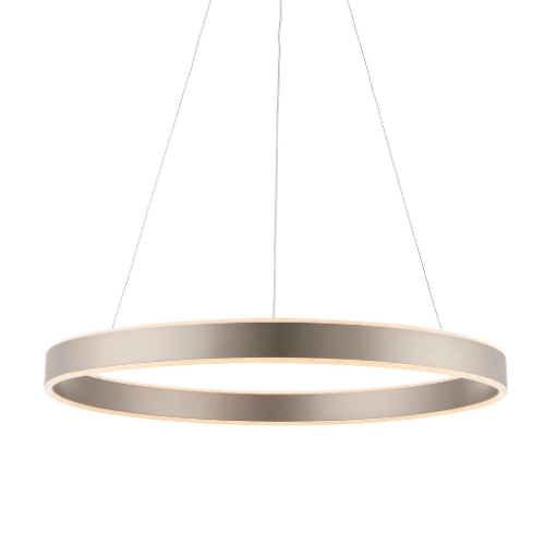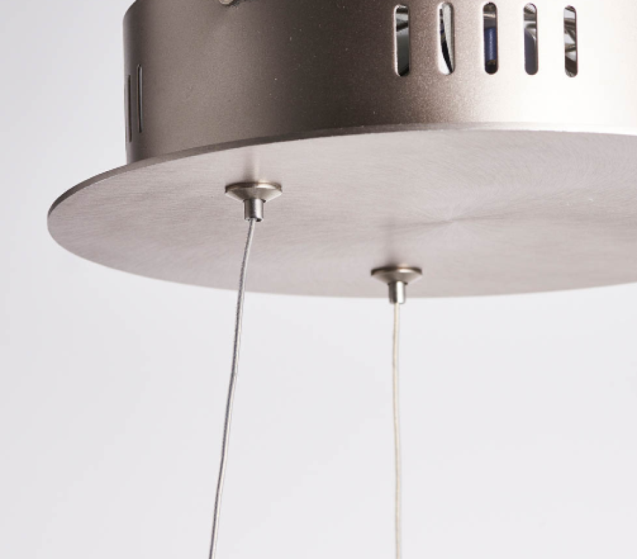 Create the ultimate contemporary look with the Gen, architectural LED pendant. Effortlessly suspended from thin wire cables for the complete minimalist look. Contemporary designer style Matt nickel finish with frosted diffuser Height adjustable 1.5 metre cable 42w integrated SMD LED - 2450 lumens 3000k warm white Dimmable when paired with a trailing edge dimmer switch