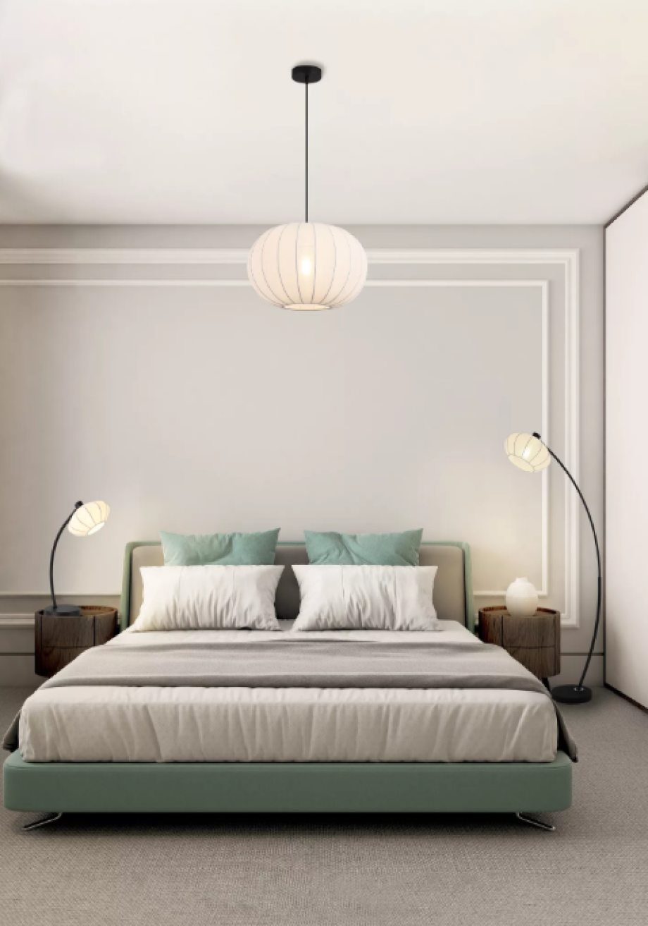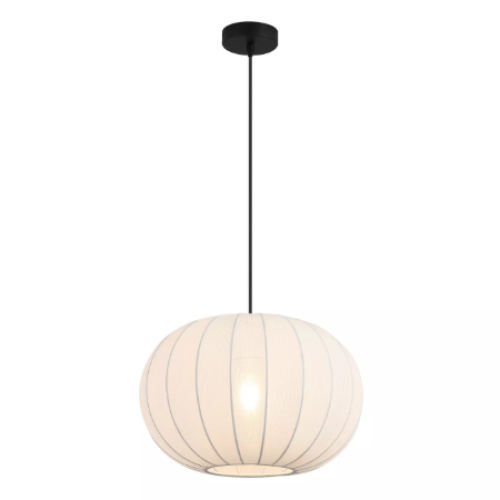 Sophisticated and nature-inspired, this elegant pendant light features a distinctive white fabric shade with subtle vertical detailing that creates the graceful appearance of a blooming flower bud. Perfect for modern living rooms, bedrooms, or reading nooks where ambient lighting creates relaxation, this pendant also suits commercial environments including boutique hotel lounges, spa reception areas, and contemporary office spaces where nature-inspired design creates a welcoming atmosphere. Compatible with a wall dimmer switch for customisable lighting control, it provides gentle illumination that perfectly balances task and ambient lighting needs. Requires 1 x GLS bulb (sold separately). Dimensions: Height 150cm x Width 38cm