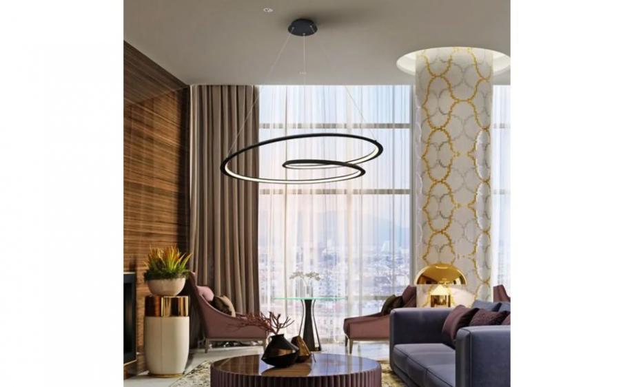 For a glamourous but minimalistic light the swirl effect LED pendant is a great choice. Its charming and elegant modern design makes this an attractive light fitting on or off. The large-sized pendant is supported by a circular ceiling plate and has an impressive maximum drop of 130cm.