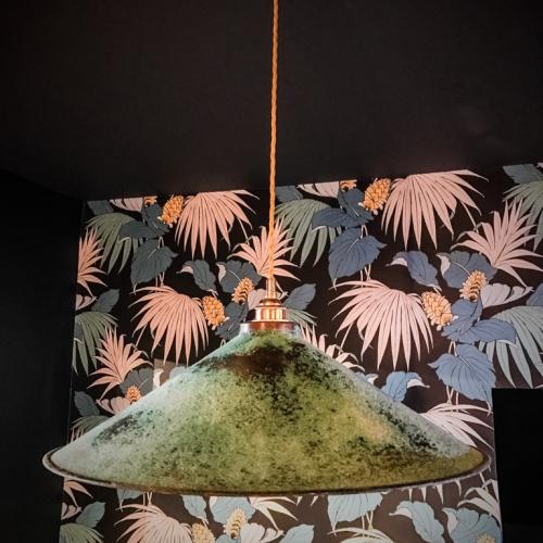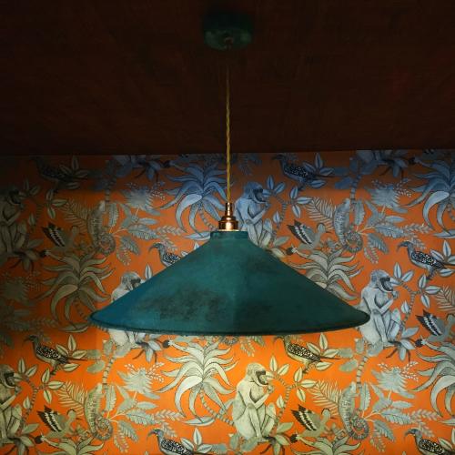 To create this natural aged effect takes several days to break the copper finish down, once the patina has set in we then lacquer the shade and ceiling rose by hand to seal the finish. This is a very unique and beautiful patina finish and each one we make is slightly different. They each age slightly differently and this adds to the character of the finished lighting design. We have these pendants on display in our Bristol showroom and welcome you to come and see them ahead of buying.