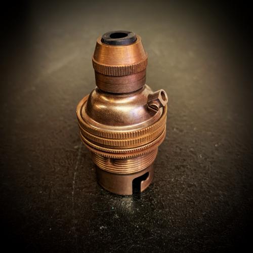 Aged bronze finish BC lampholder with 2 x matching aged lock rings and a matching aged bronze metal cord grip. Ideal for use with pendants.