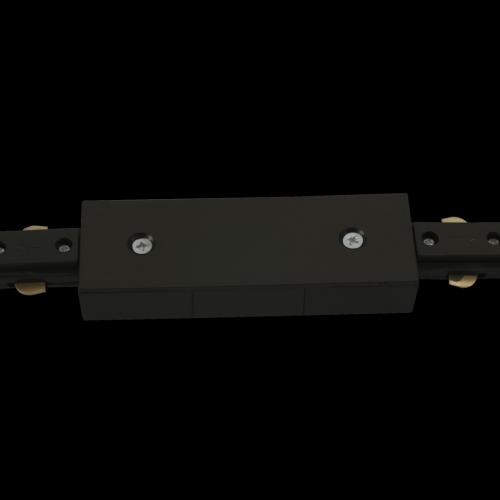 Black retail track inline join/coupler for connecting two track runs in a straight line.