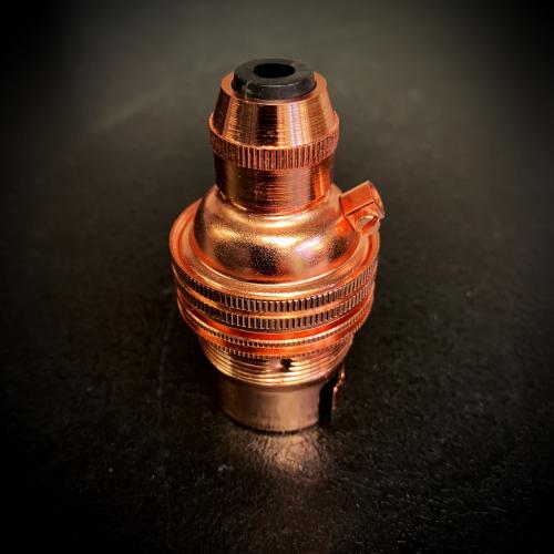 Copper BC lampholder with 2 x matching copper lock rings and a matching copper metal cord grip. Ideal for use with pendants.