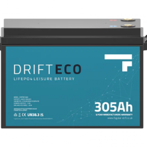 - Compact Powerhouse: Despite its impressive capacity, the Drift ECO 305Ah remains manageable at 28kg and a compact size of 380 (H) x 190 (L) x 245 (W).
