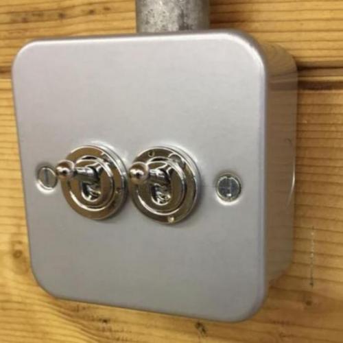 Metal clad 2g chrome toggle switch. A stylish handmade industrial light switch with a retro polished chrome toggle switch. Each switch is a 2g 2w switch so you could use two on the same circuit.