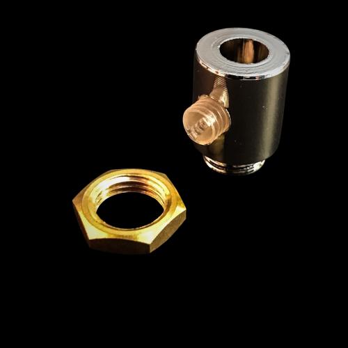 Polished nickel decorative hand made metal lighting cord grip. Each metal cord grip is supplied with a 10mm fixing nut and a small plastic grub scerw to hold the cable securely. Ideal for decorative ceiling roses and lampholders when a cord grip is needed for safety. Rather than use a cheaper plastic cord grip why not use a stylish metal one. There are a total of four finishes in our range.