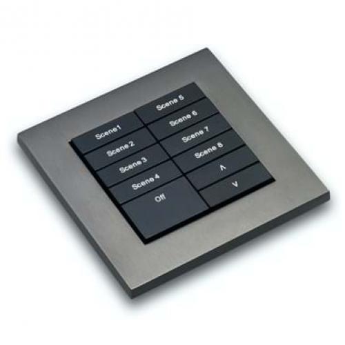 Both wired and wireless Modular control modules are designed to be flush mounted to UK back boxes with black buttons and seven different surround finishes to choose from. A number of standard button configurations are available offering scene and curtain/blind control options, with custom button engraving available to order.