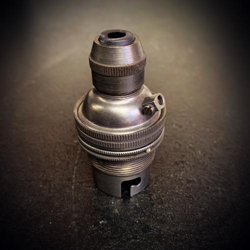 Rustic black BC lampholder with 2 x matching black lock rings and a matching rustic aged black metal cord grip. Ideal for use with pendants.