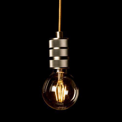 Satin gold milled steel E27 pendant lampholder. A new modern etched metal E27 holder sold with matching cord grip. Ideal for making up a feature pendant light. This stylish design has a unique milled pattern engraved into the metal holder.