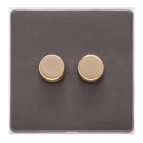 Our 2 Gang TED Dimmer Switch (compatible with LED lamps) from the Verona Range in our Matt Bronze finish allows you to adjust the brightness of a light instead of just turning it on and off.